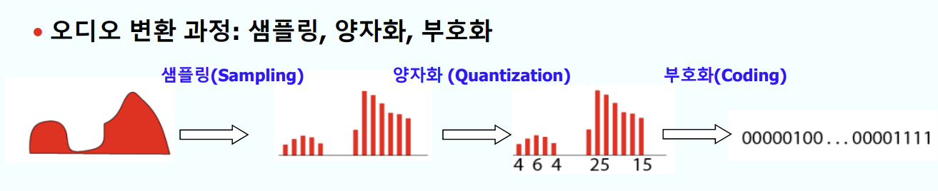 - 8bit 양자화 -> 256단계, 16bit 양자화 -> 65536단계