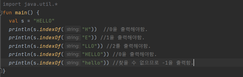 :인자로 받은 문자나 문자열이 수신 객체인 문자열에 나타나는 첫 번째 인덱스를 반환한다.