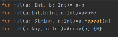 - mul(1,2L)은 mul함수 중에서 (Long, Int)를 받을 수 있는 함수가 없기 때문에 컴파일러 오류가 발생한다.
