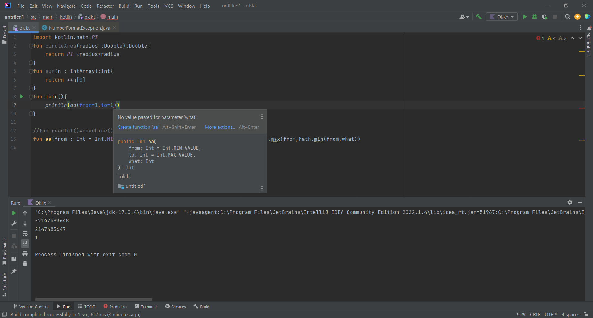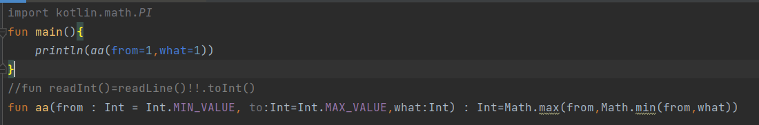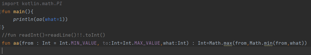 fun aa(from : Int = Int.MIN_VALUE, to:Int=Int.MAX_VALUE,what:Int):Int=Math.max(from,Math.min(to,what))