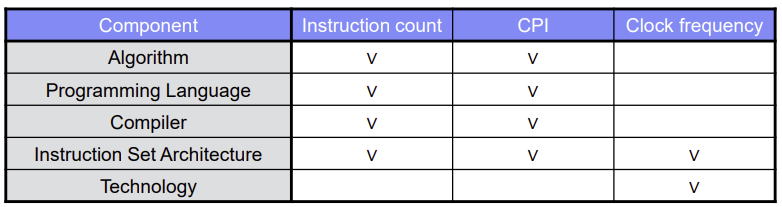 CPU Time = Seconds/Program = Instructions/Program * Clock cycles / Instruction * Seconds / Clock cycle