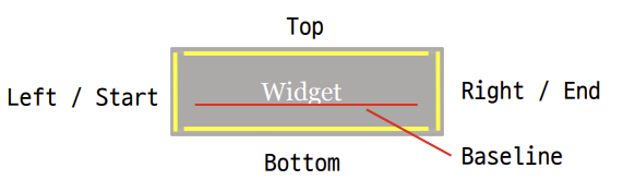 - android:layout_alignBaseLine : 기준 뷰와 텍스트 기준선을 맞춤.