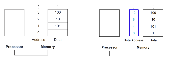 - 메모리 안에 있는 word에 접근하기 위해서 인스트럭션은 메모리 주소를 제공해야 한다.