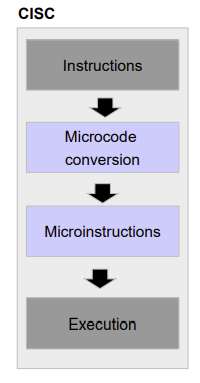 - Small instruction set : CISC type operation becomes a chain of RISC operations