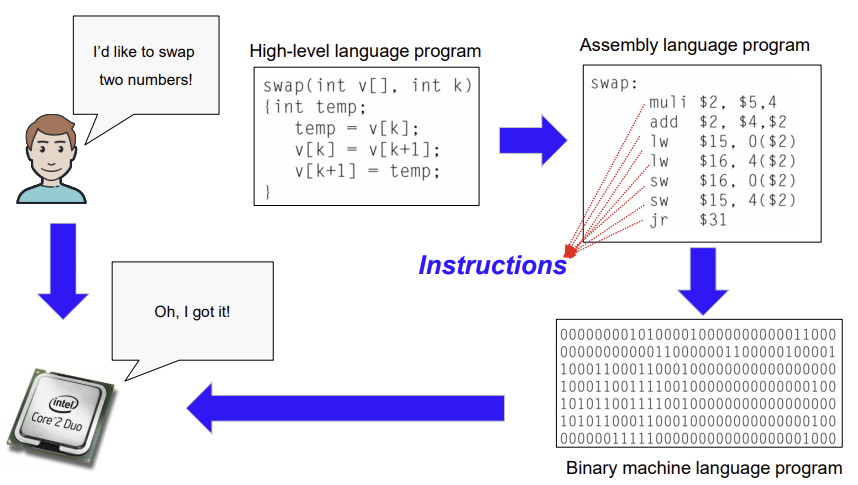 - 인스트럭션은 하드웨어와 소프트웨어 사이에 있다.