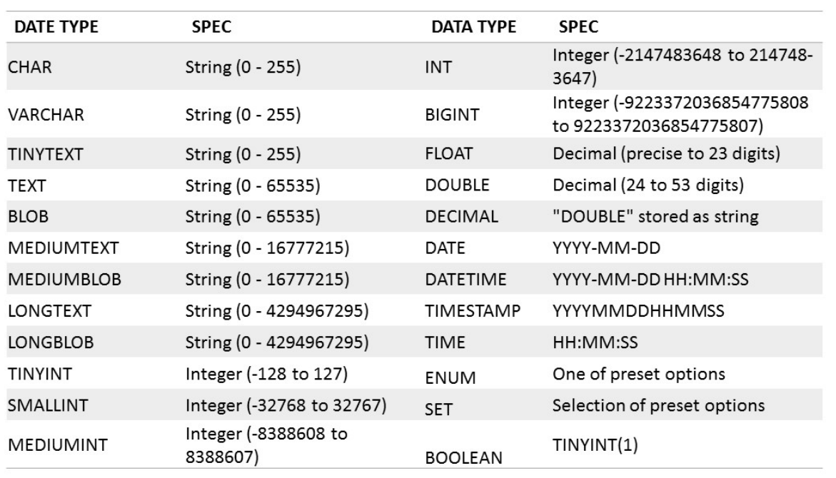 💡DBMS에서는 유저가 스스로 그들의 domain과 UDT(User Defined TYpes)를 정의할 수 있지만, MYSQL은 그것을 허락하지 않는다.