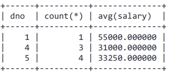 select Dno, count(*), avg(salary)