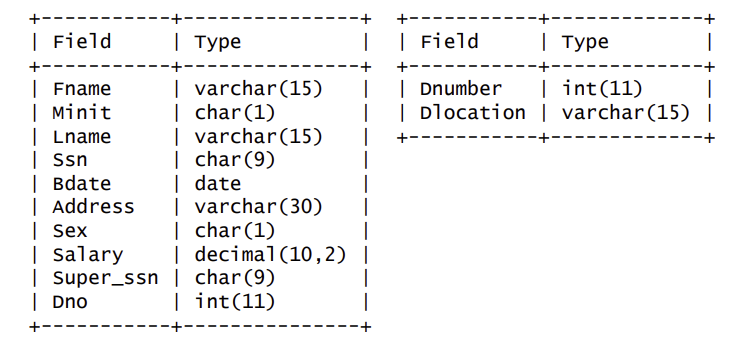 - 만약 dnumber를 쓰게 된다면 dept_location에서 hosuon에 해당하는 dnumber와 employee에 dno가 같은 tuple의 fname과 lname을 뽑아준다.