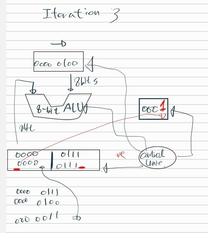 - multiplier의 LSB를 check 하고 그 값이 1이라면 더한다. 0이라면 그냥 넘어감.