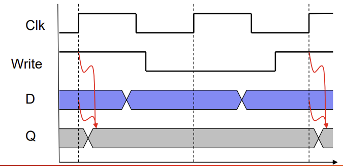 💡즉 wrtie 신호와 clock cycle이 둘 다 1일 때 Data -> Q로 옮겨진다.