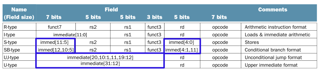 - immediate [10:5]는 25번째 bit부터 30번째 bit이기에 table [5]~table [10] = i25~i30이 될 것이다.