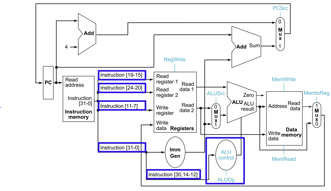 - RISC - V의 datapath를 간략화 한 그림이다.