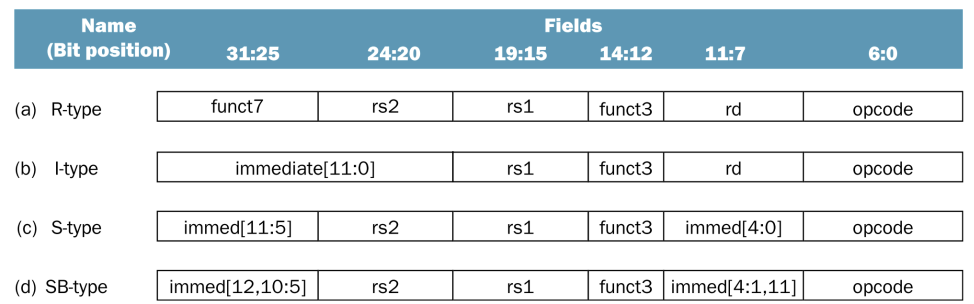 | Instruction | Format | funct7 | rs2 | rs1 | funct3 | rd | opcode |