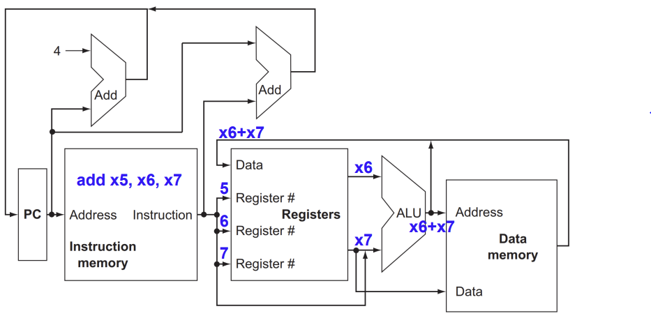 - 예를 들어 add x5, x6, x7을 실행한다고 가정할 때