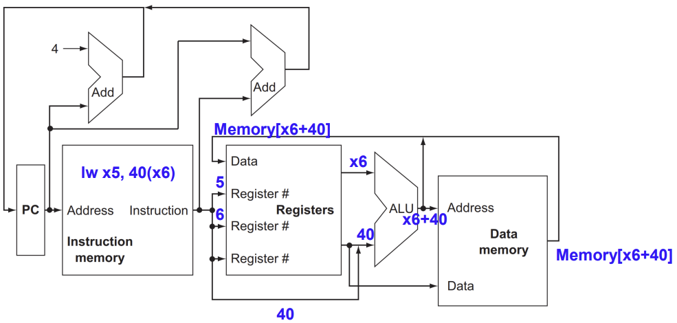 - lw x5, 40(x6)을 실행한다고 가정할 때