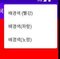 val menuItem1: MenuItem? = menu?.add(0, 0, 0, "배경색(빨강)")