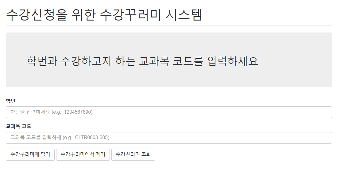 입력받은 학번과 교과목 코드를 통해서 해당 학번의 수강꾸러미에 과목코드에 해당하는 과목을 수강꾸러미에 담는다.