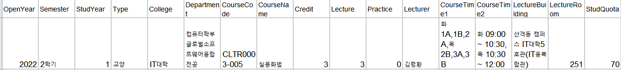 사용된 데이터는 2022년 2학기 글로벌SW융합전공으로 개설된 과목을 사용했다.