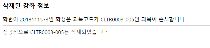 입력받은 학번과 교과목 코드를 이용해서 해당 학번의 수강 꾸러미에서 입력받은 과목코드에 해당하는 과목을 수강꾸러미에서 제거하면 된다.