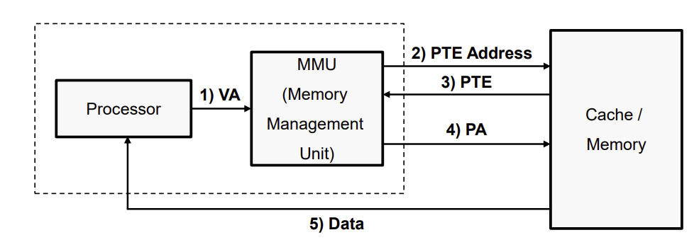 - mmu는 PTE address를 memory에 보내고 memory에 있는 page table로부터 PTE를 받는다.