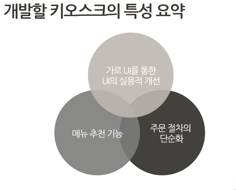 이러한 문제점 개선을 목표로 잡고 저희가 개발할 키오스크의 특성은 아래 그림과 같습니다.