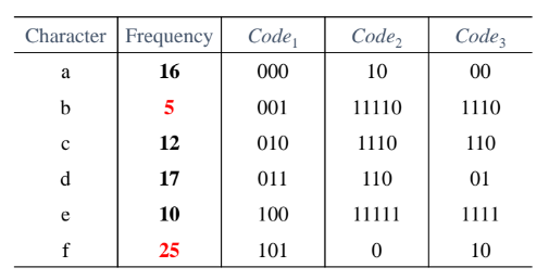 - 예를 들어 'a'의 코드 워크가 01이라면 011은 'b'의 코드워크가 될 수 없다.