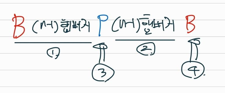 - N햄버거 = B + (N-1)햄버거 + P + (N-1)햄버거 + B