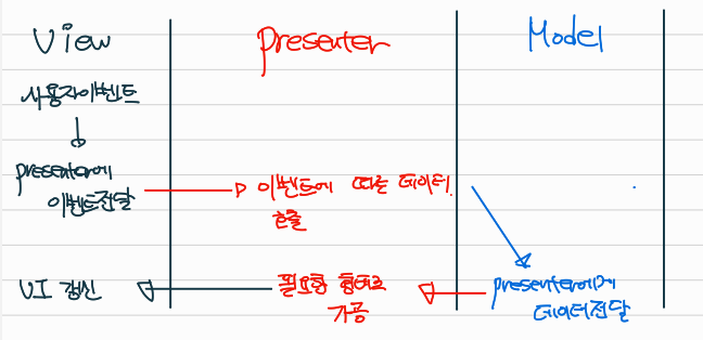 (View와 Model은 Presenter를 통해서만 데이터를 전달받는 방식으로)