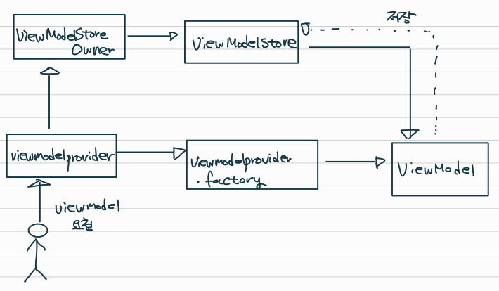 - ViewModelProvider 내부에서는 ViewModelStoreOwner를 참조하여 ViewModelStore를 가져옴.