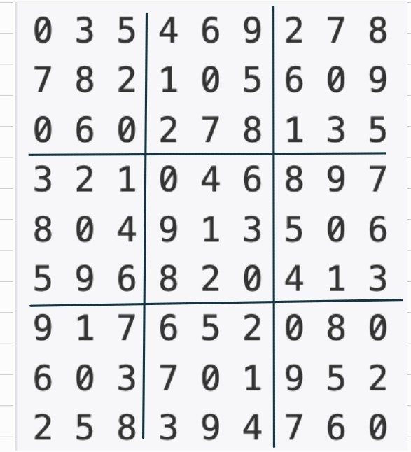 스도쿠는 18세기 스위스 수학자가 만든 '라틴 사각형'이랑 퍼즐에서 유래한 것으로 현재 많은 인기를 누리고 있다. 이 게임은 아래 그림과 같이 가로, 세로 각각 9개씩 총 81개의 작은 칸으로 이루