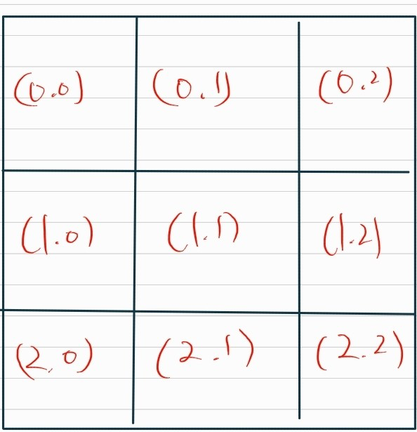 따라서 (x좌표 /3 , y좌표/3)이 해당 사각형의 범위일 것이다.