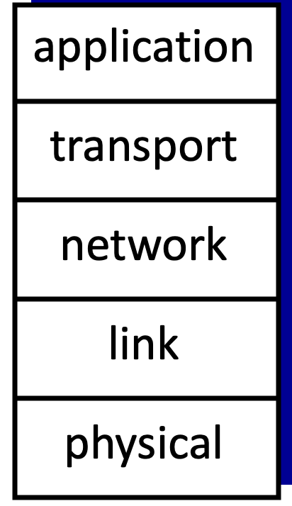 프로토콜 stack은 5개의 layer로 이루어져 있습니다.