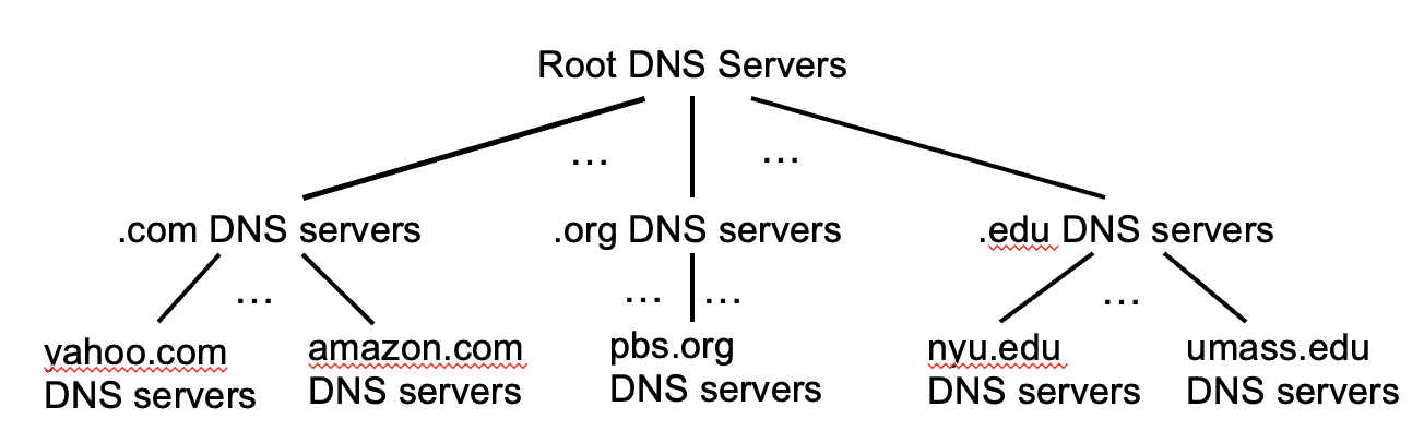 - Root -> TLD -> Authority name server