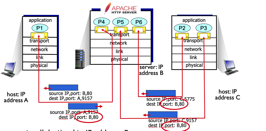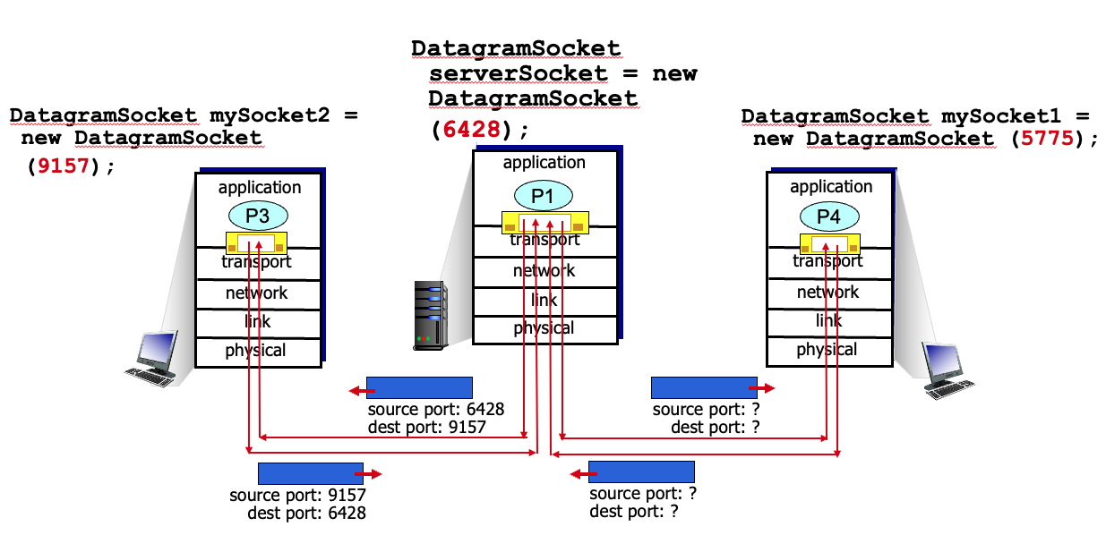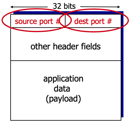 - Demultiplexing은 segment를 포트번호와 헤더를 보고 적절한 소켓에 전달해야 함.