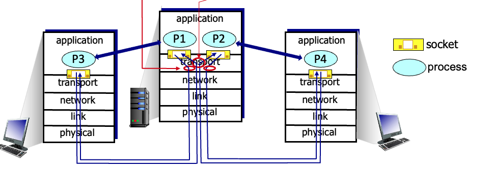 - 다중화와 역다중화는 Transport Layer 뿐만 아니라 모든 계층에서 일어난다.