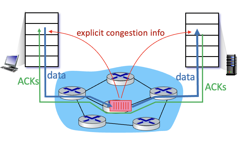 - 라우터는 송신/수신 측에게 congested router를 통해서 데이터가 통과했다고 가르쳐 줍니다.