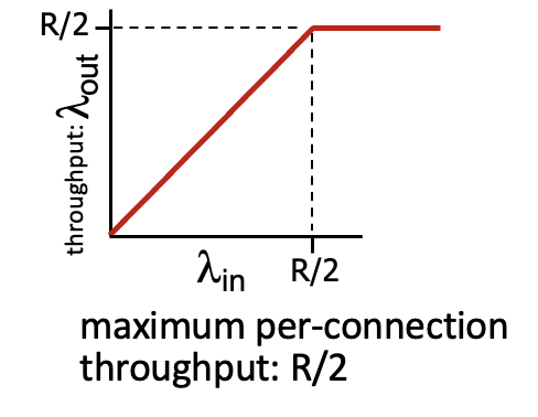 왼쪽 그림을 보면 송신과 수신이 라우터를 R/2만큼 가지면 비례해서 서로 주고받았지만,