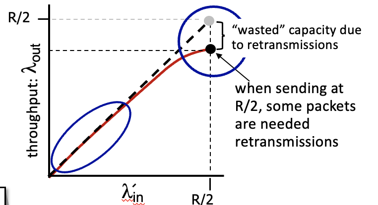 - 그러면 처리량은 버퍼가 가득 차서 패킷 로스된 상황보다 훨씬 적다.