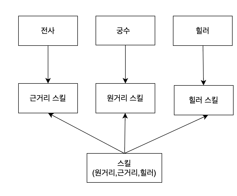 위 그림을 보면 전사, 궁수, 힐러는 스킬을 상속받고 있습니다.