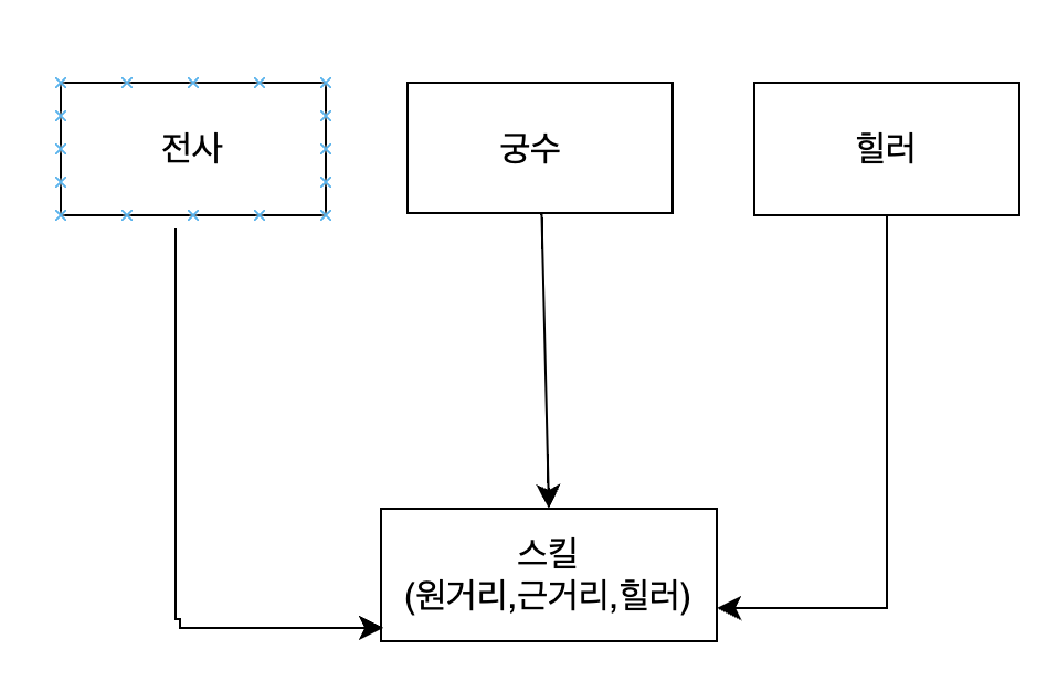전사는 근거리 스킬, 궁스는 원거리 스킬, 힐러는 힐러 스킬만을 사용한다고 가정할 때,