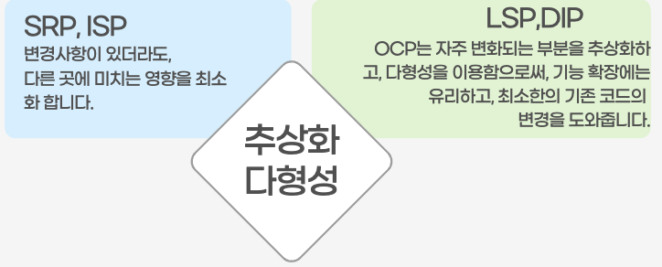 정리해 보니 객체지향 설계 원칙인 SOLID는 추상화와 다향성을 굉장히 강조하고 있습니다.