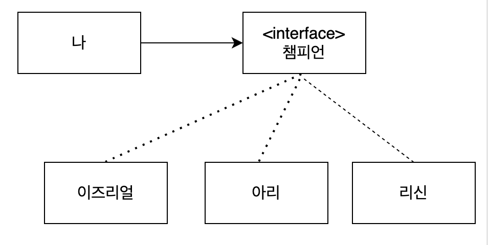 따라서 구체적인 챔피언이 아닌 추상화된 챔피언 인터페이스에만 의존하게 함으로써, 사용자는 영향을 받지 않는 형태로 구성됩니다.