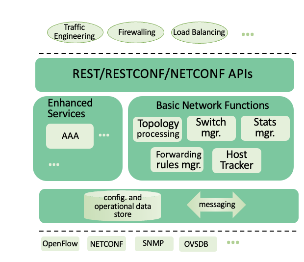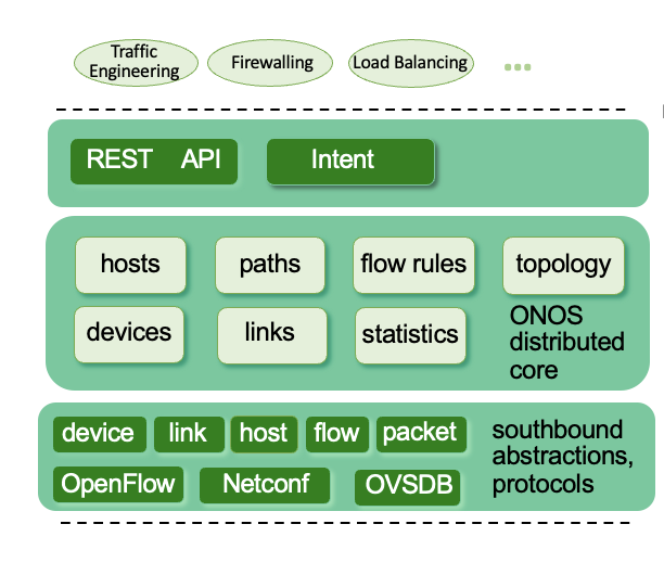 - 제어의 두뇌라고 불리며, SDN controller가 제공하는 하위 수준 서비스 및 API를 사용하여 control