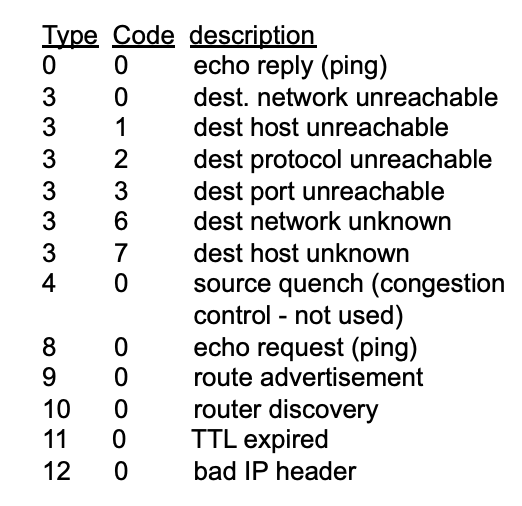 - 도착 불가능 : 호스트, 포트, 네트워크 등등 목적지로의 전달이 불가능한 경우 -> type 3