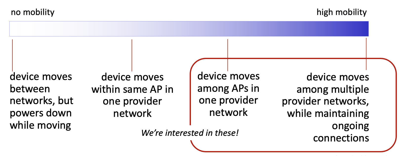 - 디바이스는 연결을 유지하면서, 여러 네트워크를 이동한다.