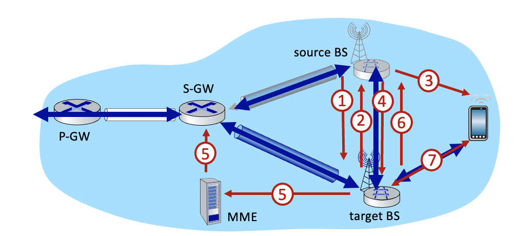 - source BS는 모바일 기기로 datagram을 보내는 것을 증단하고, 새로운 BS로 포워딩한다.