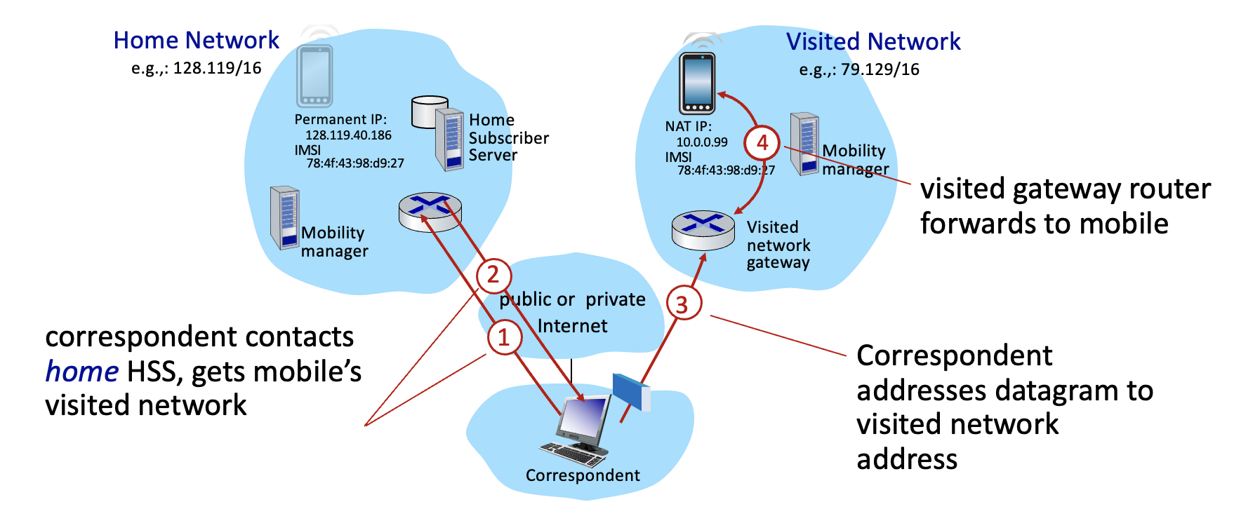 - 받은 visited gateway router는 mobile로 패킷을 포워딩한다.