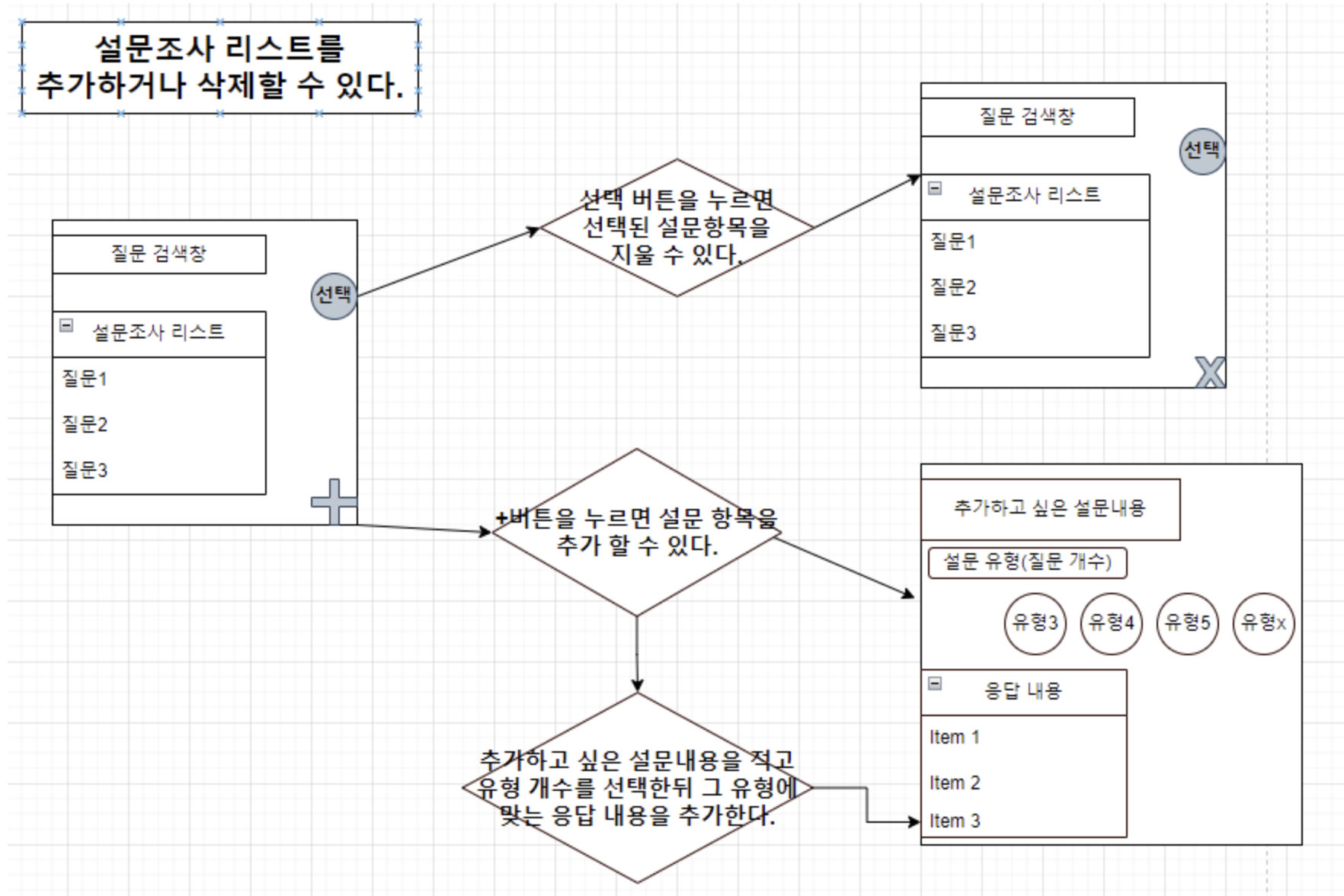 그리고 자체적으로 설문지를 추가하고, 제거할 수 있는 기능을 요구했습니다.