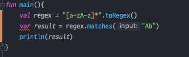 input으로 Ab가 정규식을 만족하는지 확인했고, 결과는 당연하게 true가 나올 것이다.