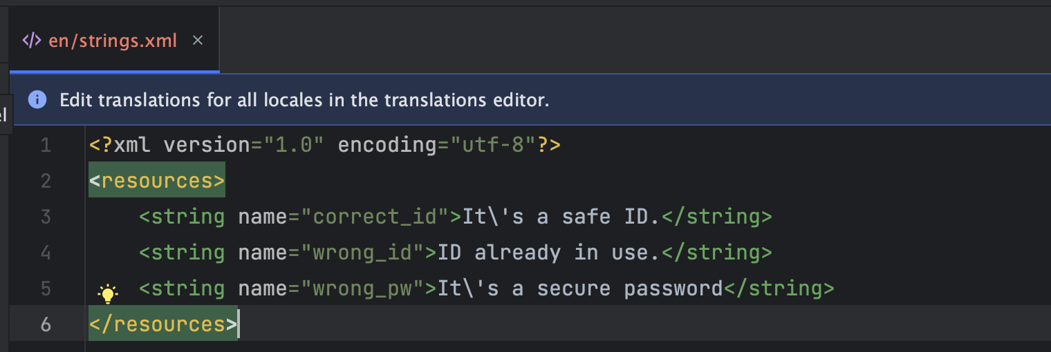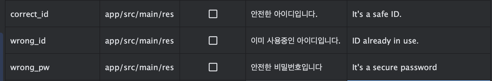 하지만 해당 values-en이 생성되면 언어가 영어일 경우 correct_id가 It is a safe Id가 출력될 것이다.